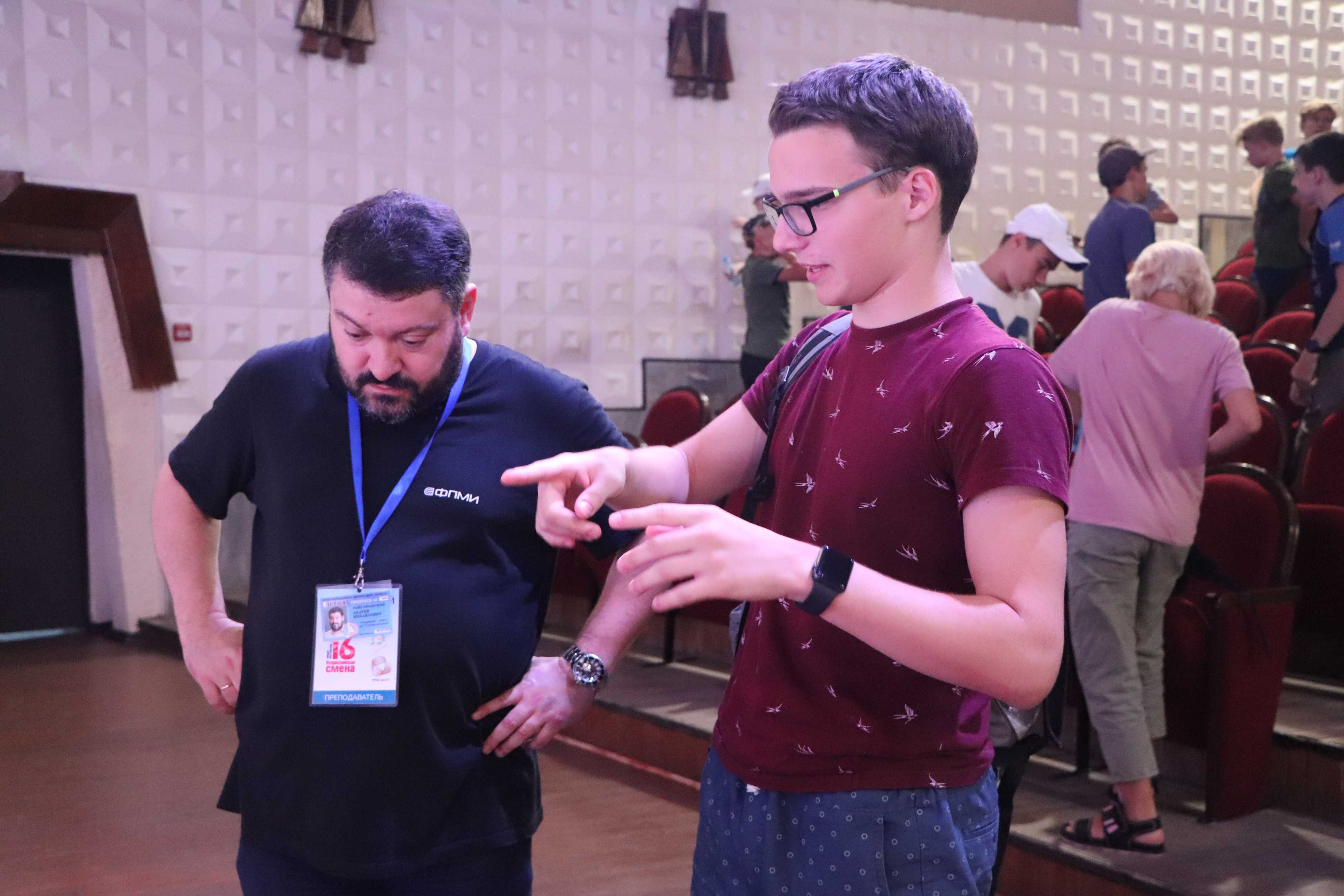 А после ужина учащихся 10-11 классов пригласили на встречу «В орбите Физтеха», которую провели Д. К. Мамий и А.М. Райгородский. Они рассказали о направлениях подготовки Физтех-школы прикладной математики и информатики МФТИ, Адыгейского государственного университета, базовых кафедрах и взаимодействии с индустриальными партнерами, а также о фундаментальных и прикладных исследованиях, проводимых в МФТИ и Кавказском математическом центре Адыгейского государственного университета.