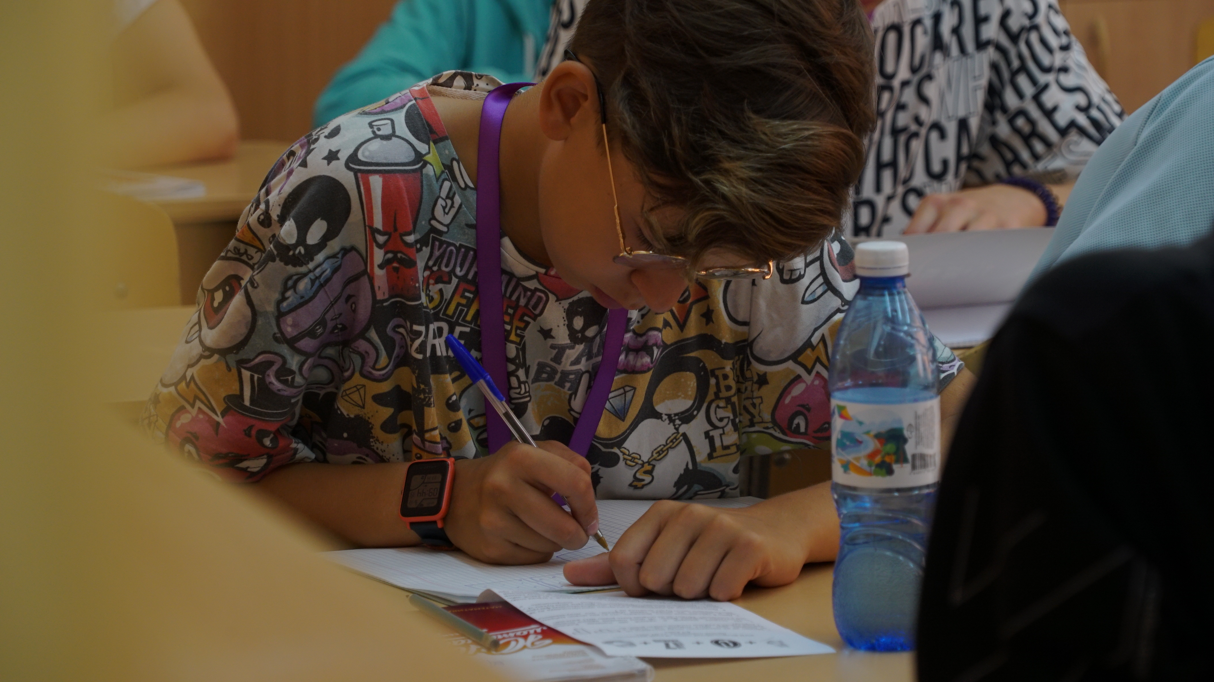 Сегодня, 12 сентября, в общеобразовательной школе ВДЦ «Орленок» участники XVII смены «Юный математик» писали математическую олимпиаду. Как и положено настоящим олимпиадникам, ребята решали задачи до последней минуты. Они были очень увлечены, и уже после сдачи работ делились впечатлениями, делились решениями.