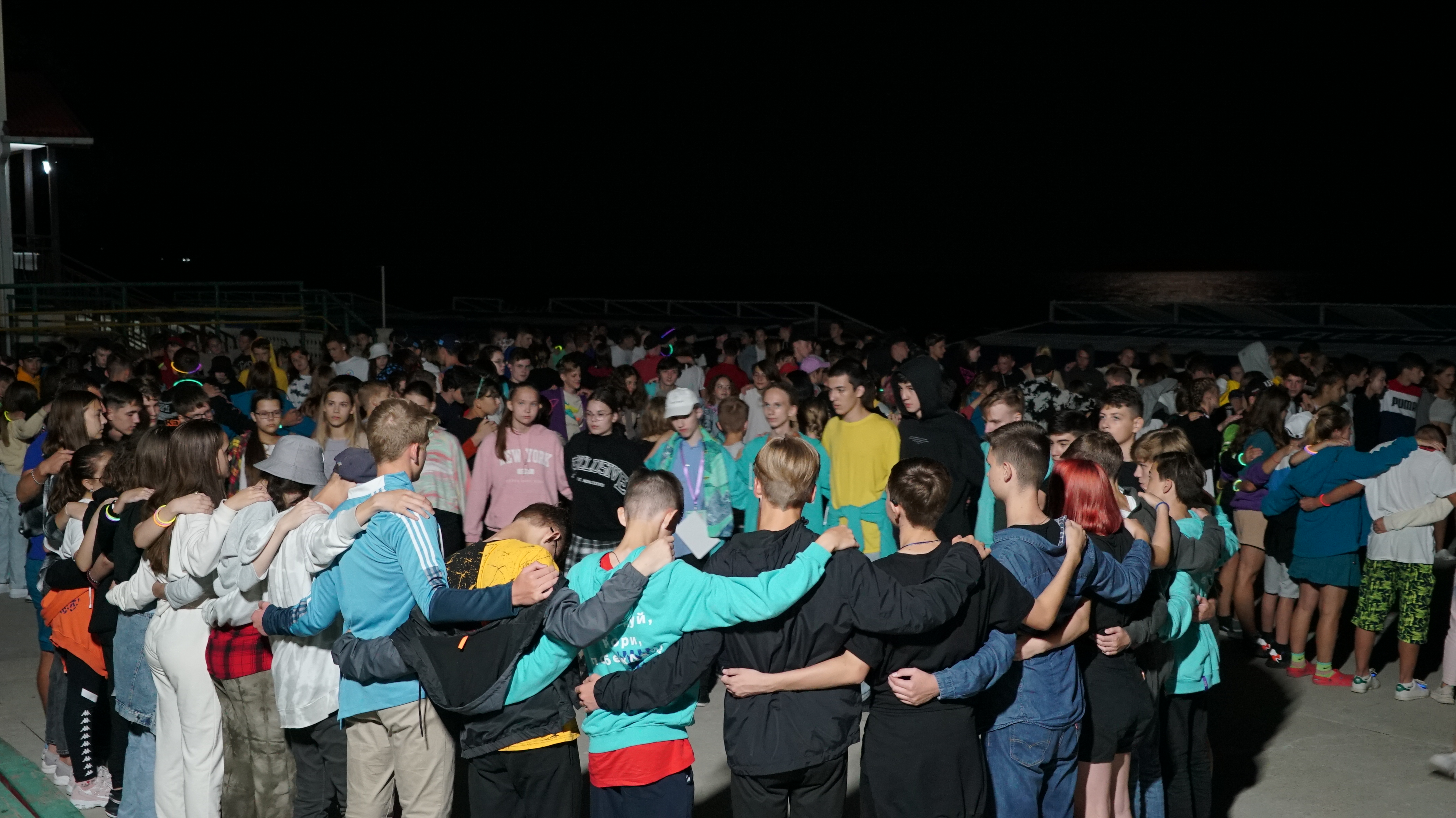После ужина, в 19.30, для всех «орлят» лагеря «Солнечный» провели вечер легенд. Начался вечер в амфитеатре. Каждая команда, обнявшись, образовала круг и пела песню «Как здорово» Олега Митяева. Затем вожатые повели детей по знаменитым местам лагеря и рассказывали легенды, которые ходят по «Орленку» уже не одно десятилетие.