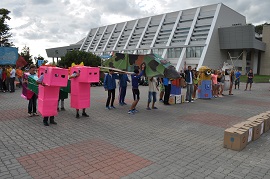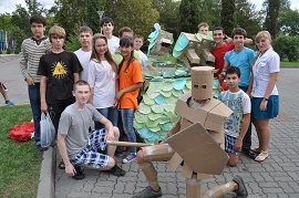 А уже за день до самого главного стартовала кропотливая работа над настоящими фигурами. Дети получили в своё распоряжение картонные листы, коробки, деревянные рейки для построения устойчивых и крепких конструкций, способных поразить не только жюри, но и соперников. Ребята оказали активную поддержку от профессионалов, которые специально приехали ради этого события.