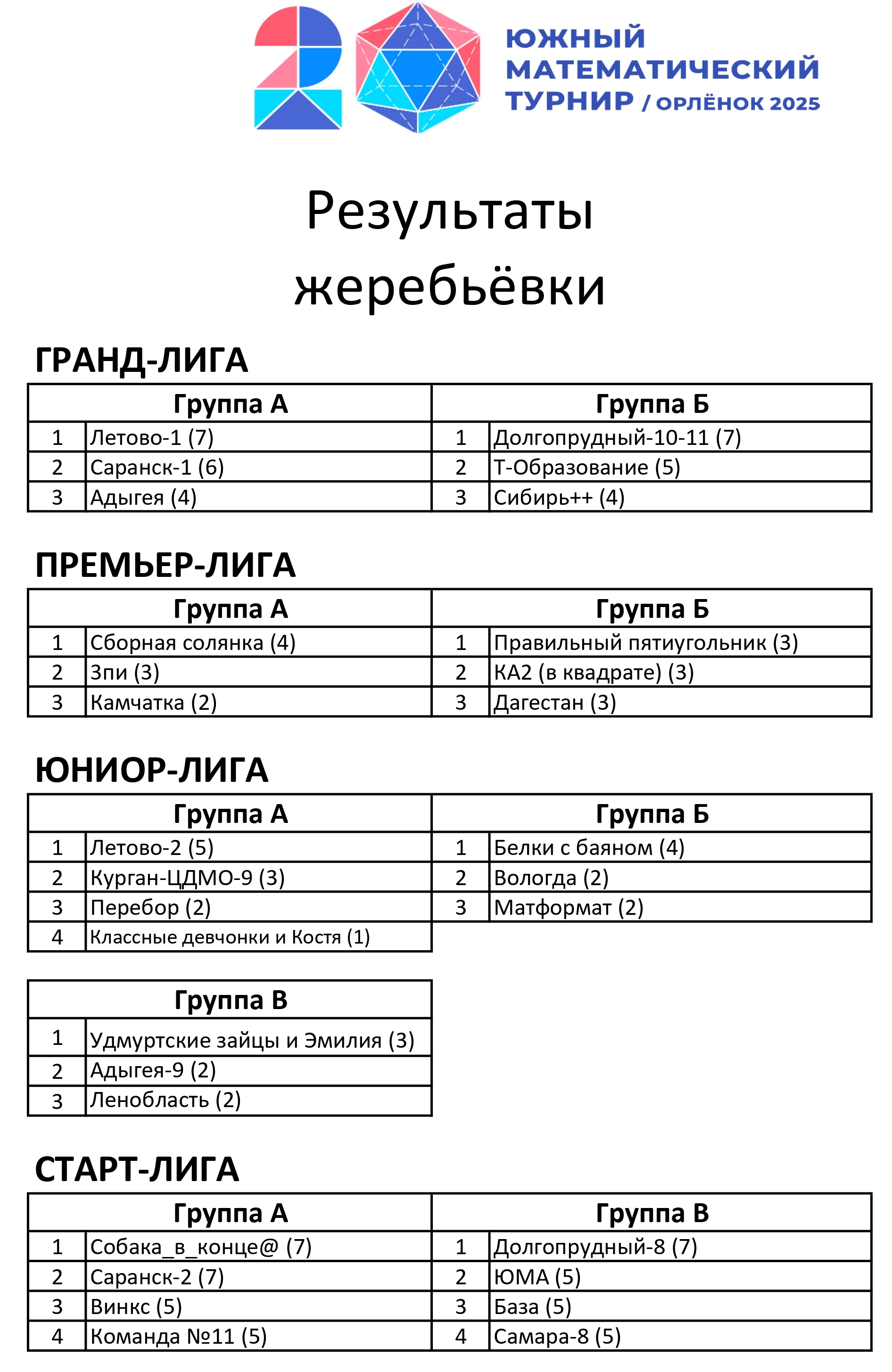 Результаты жеребьёвки